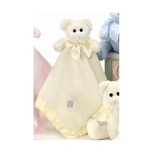 Part snuggly security blanket, part plush bear, this snuggler will be such a comfort to your little one. Soft custard yellow blanket is satin-bound and has embroidered blocks and a plush bear head and arms with a satin bow. What a wonderful baby shower gift. Measures 18" x 18".